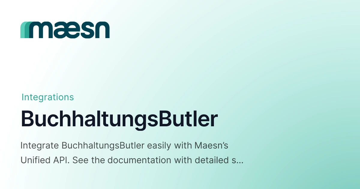 Maesn abstracts this entire surface into a single unified API. You integrate once to Maesn and your product automatically works with BuchhaltungsButler and every other accounting and ERP system in the Maesn portfolio, without system-specific branches in your code.