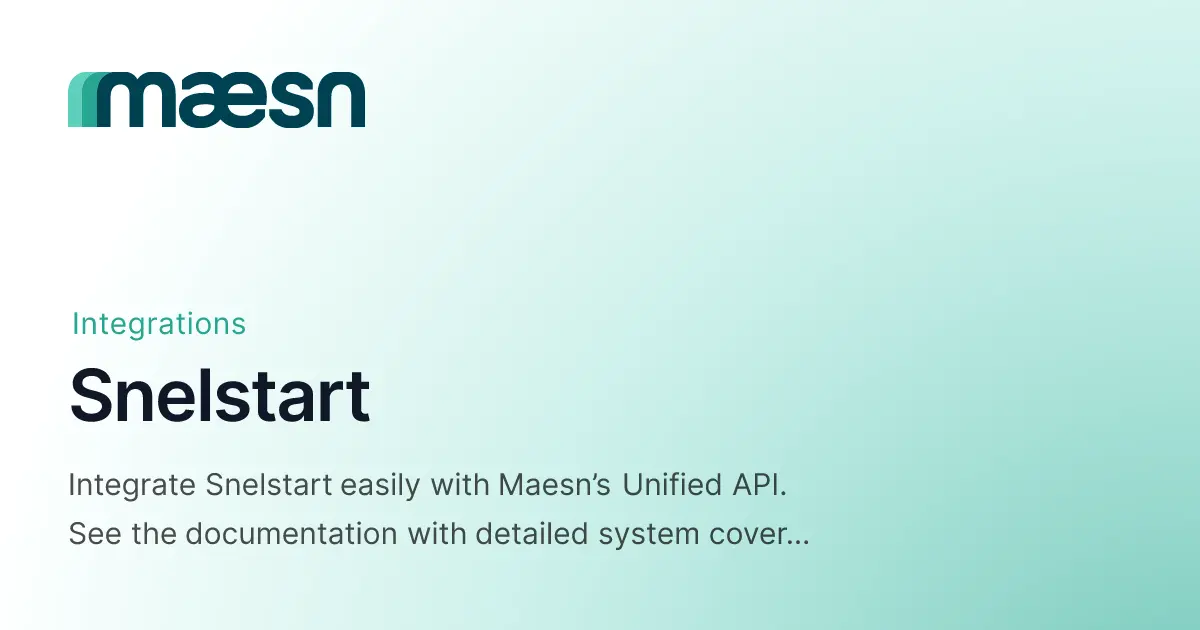 For this reason, software teams choose to integrate Snelstart through Maesn Unified API. That centralize authentication handling, normalize object structures into a consistent data model and resolve multi-call dependencies. This approach allows Snelstart to be treated the same way as all other accounting systems supported by Maesn.